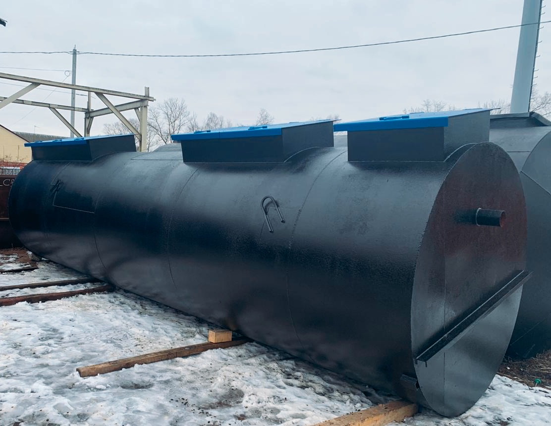Габариты очистного сооружения: 2 емкости длиной 11600 / диаметром 2400 / весом 13800 кг.