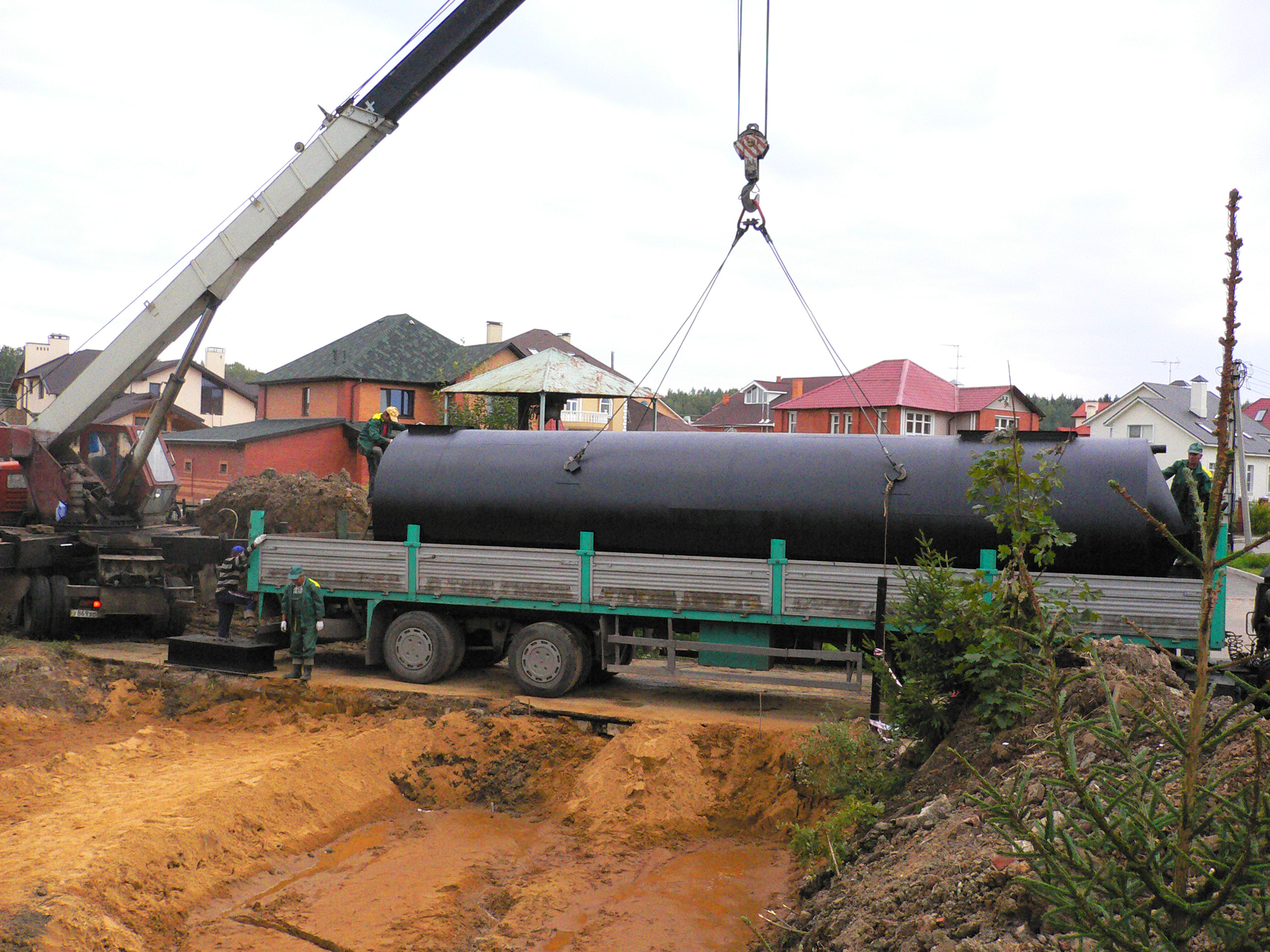 Габариты очистного сооружения: 10 блоков очистки длиной 11600 / диаметром 2400 / весом 69000 кг.